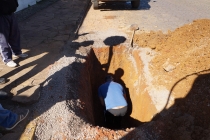 Na manhã de Segunda-feira (13), foi resolvido um problema de entupimento na rede de esgoto, na esquina das ruas General Lima com a Borges de Medeiros, no centro.