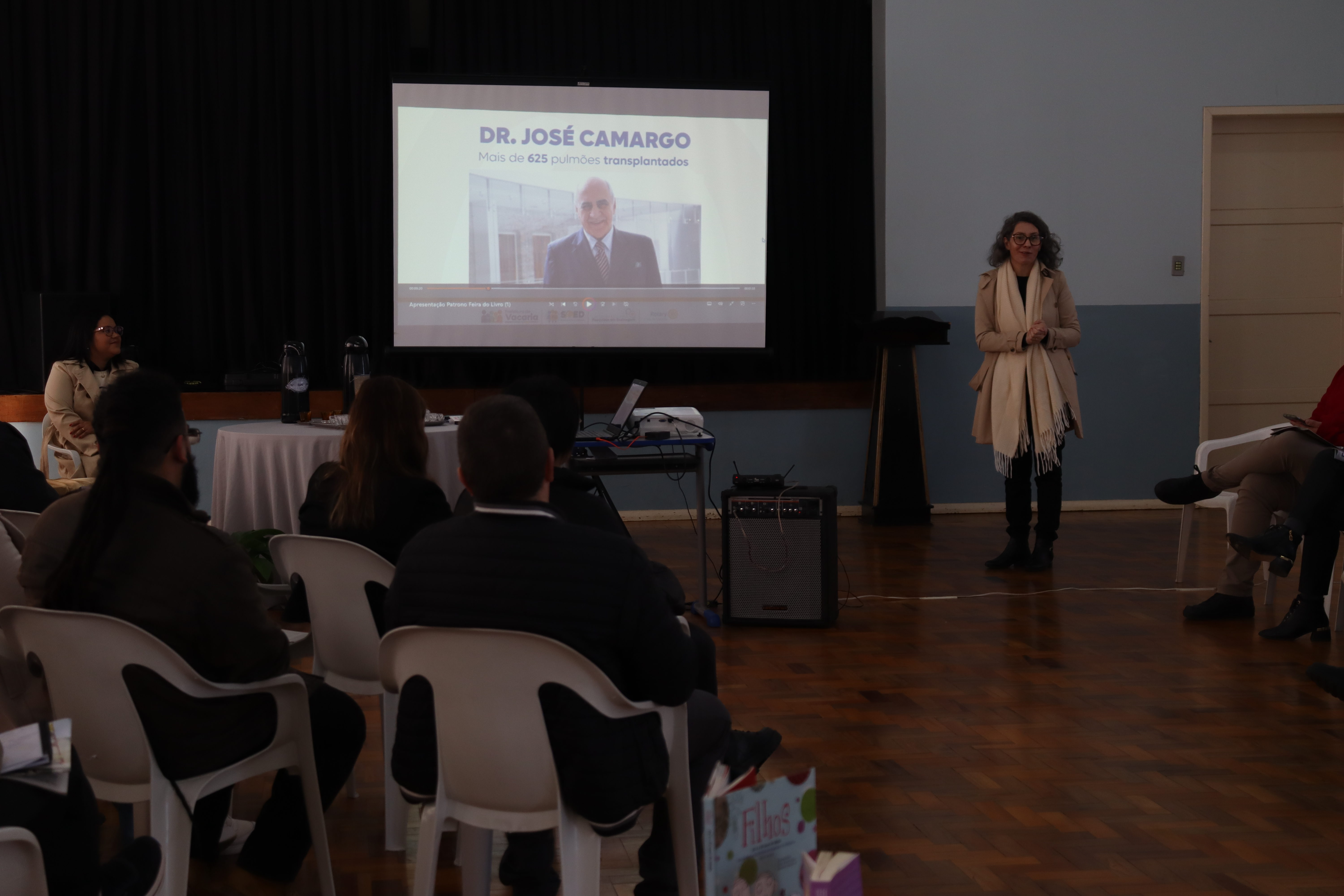 “O patrono da feira do livro desse ano é um vacariano que muito nos honra.” Dessa forma foi apresentado o médico e escritor José Camargo para a missão de impulsionar o evento e conecta-lo com a comunidade. Foi apresentado vídeo com a manifestação do patrono: “Meus queridos conterrâneos de Vacaria. Recebi com grande honra e alegria o convite para participar como patrono da Feira do Livro. Festejo a oportunidade de conversar com vocês,” disse.