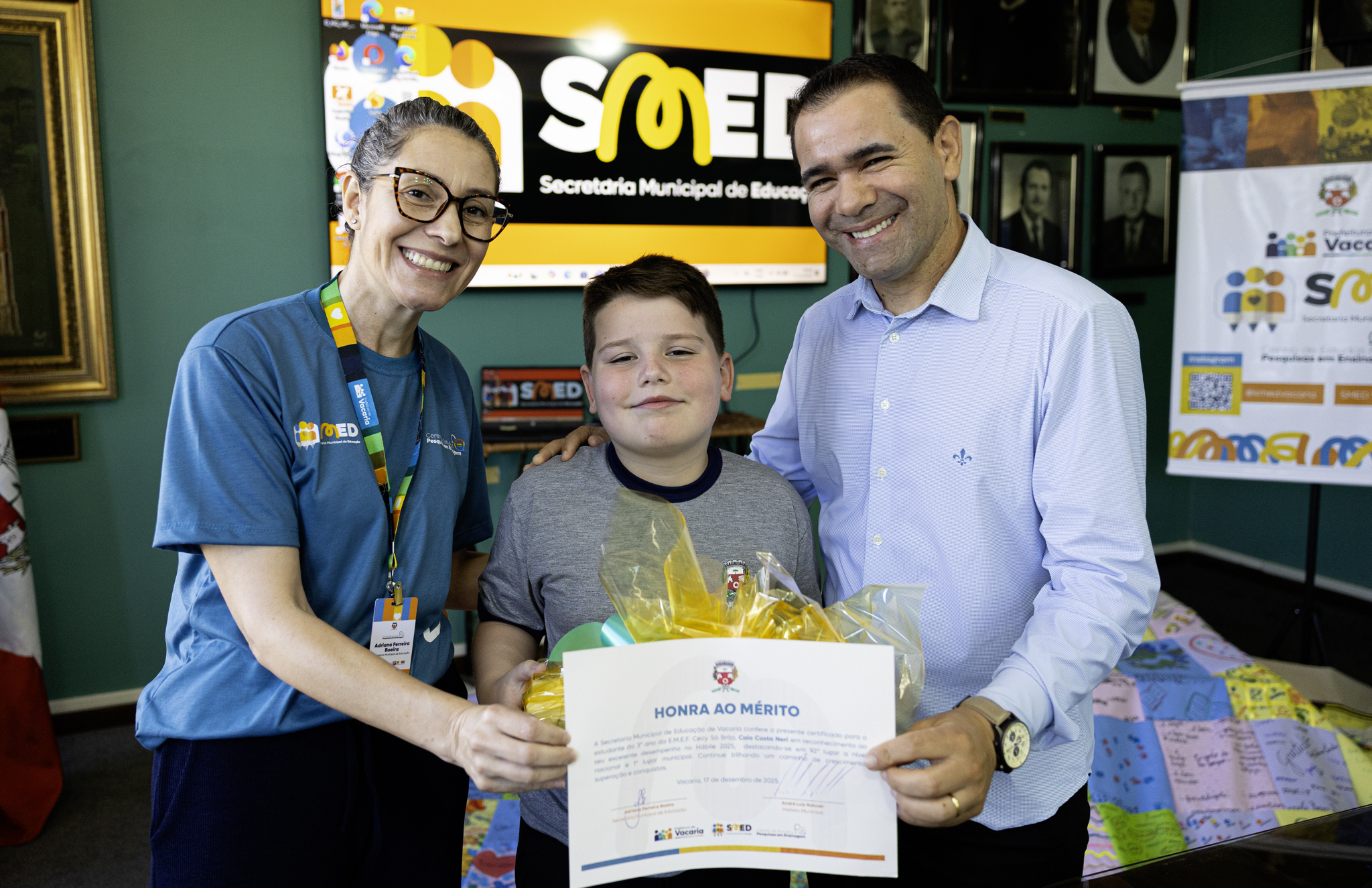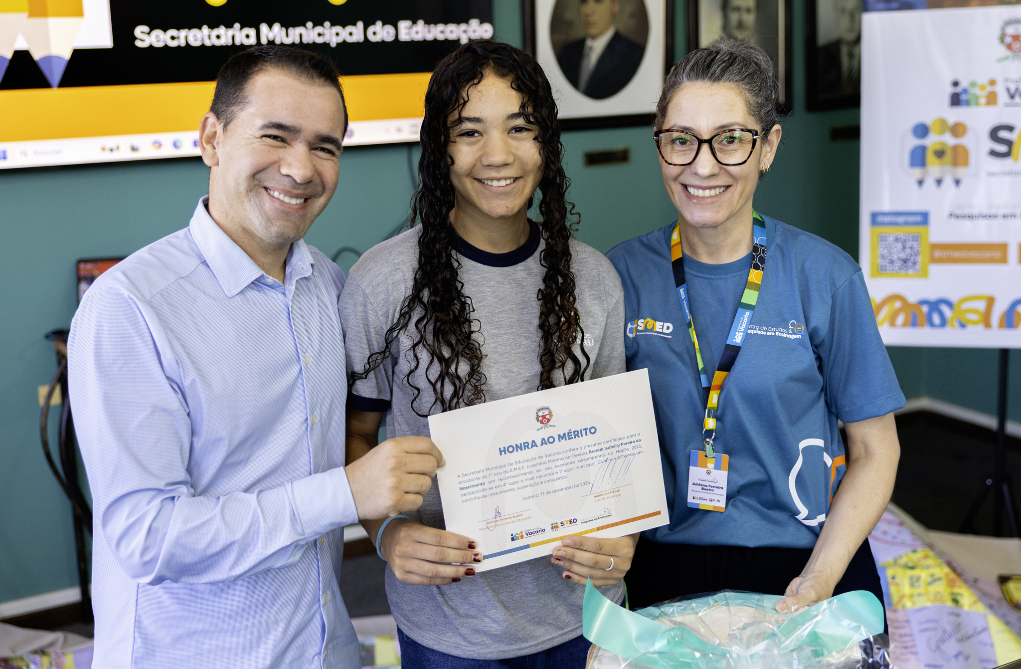 Willian Paraguassu Silva Nascimento, pai da estudante Brenda Isabelly, da 7ª sériedestacou: “Nada melhor para um pai saber que tem uma filha tão especial e muito bem capacitada. Precisamos parabenizar nosso ensino municipal de Vacaria. Nossas escolas estão muito bem estruturadas e orientadas. Aqui está o resultado.” A estudante Brenda, ao receber o reconhecimento pela conquista também se manifestou: “Sempre me esforcei ao máximo para alcançar os melhores níveis e desejo com isso chegar cada vez mais longe.”